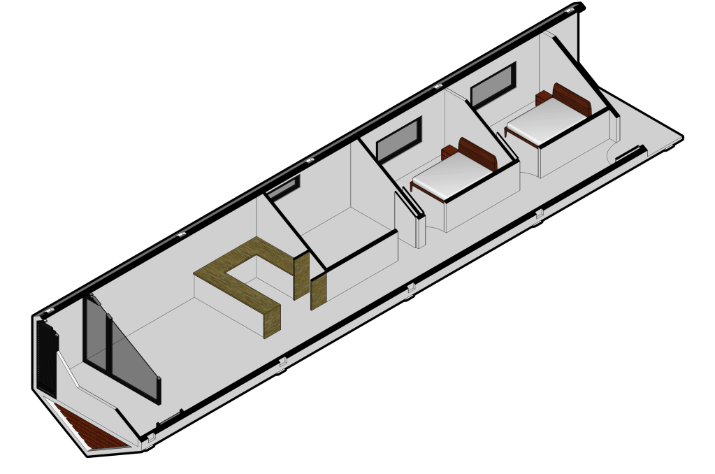 Thirdly, if any damage was to be inflicted upon the monocoque structure of a module, repairing this damage would be extremely difficult and could require the complete replacement of the damaged module. It would not be as simple as removing and replacing damaged timber planks, boards, or framing.